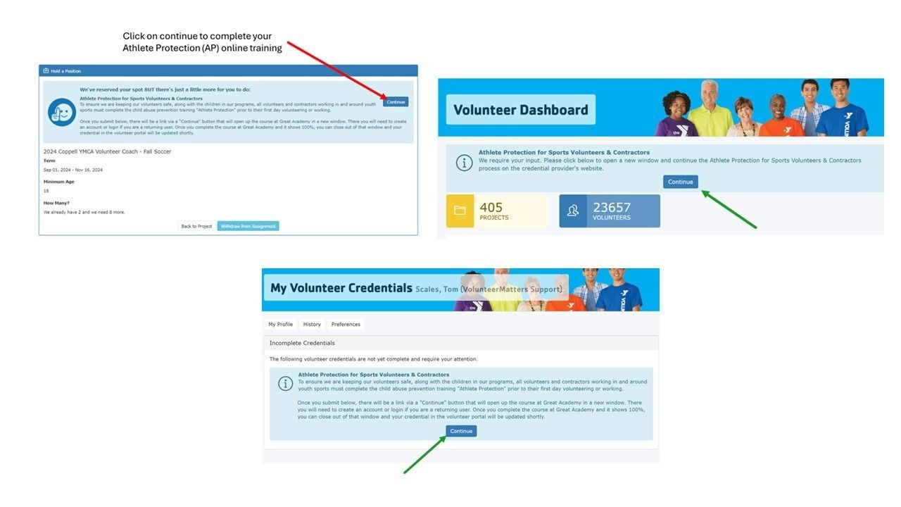 NEW COACHES: Sign up for a new account in Dallas YMCA Volunteer Matters and Great Academy for a CBC registration and complete Athlete Protection (AP), in Great Academy.